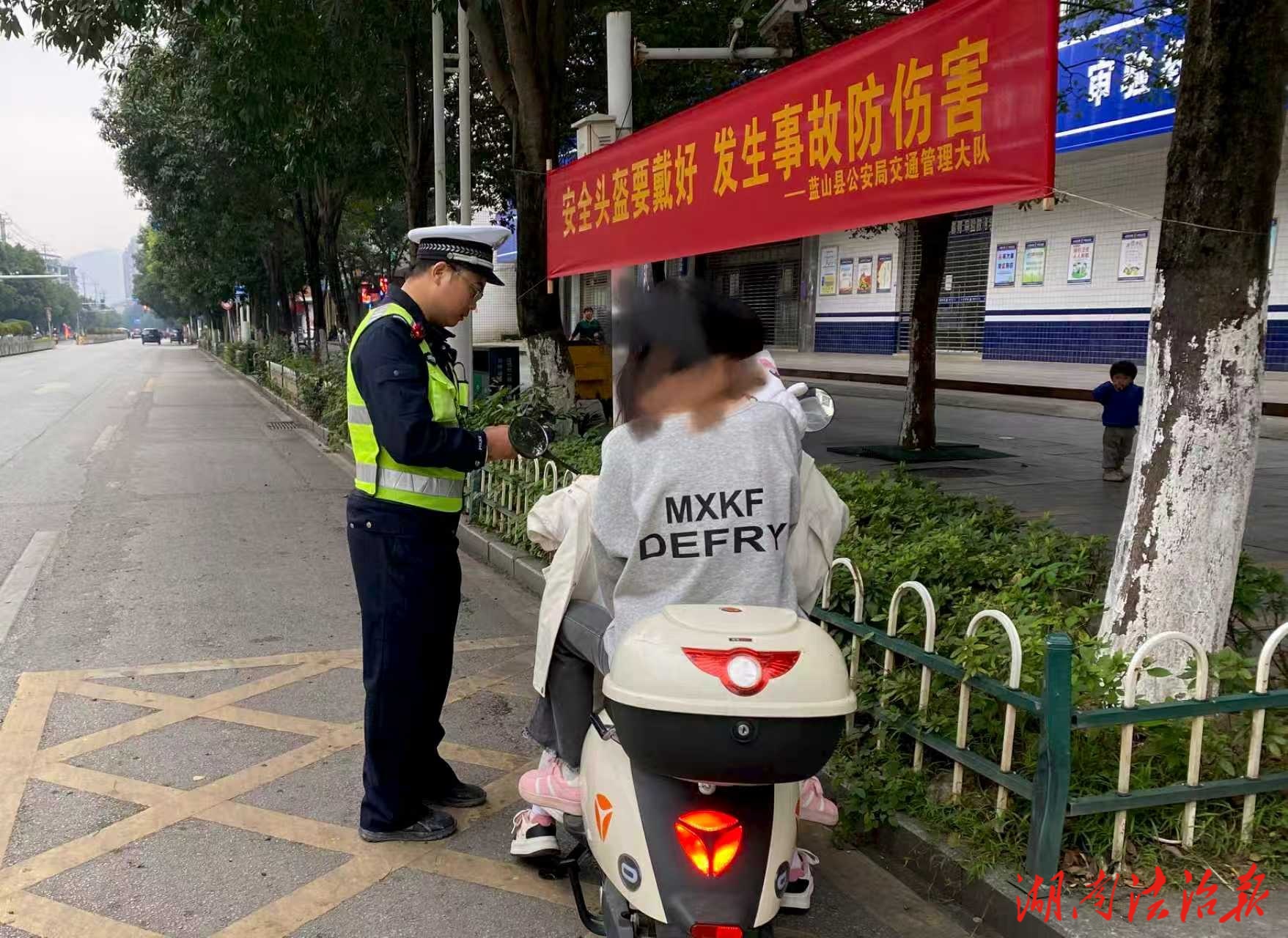 湖南法治報訊(通訊員 曾慶屏)為深入落實“一防二保三治理”專項整治行動,助力文明城市創(chuàng)建和平安藍(lán)山建設(shè),10月以來,藍(lán)山縣公安局交管大隊全面加大對駕乘摩托車、電動車未按規(guī)定佩戴安全頭盔交通違法整治力度,持續(xù)推進“戴帽工程”,提升群眾安全意識。