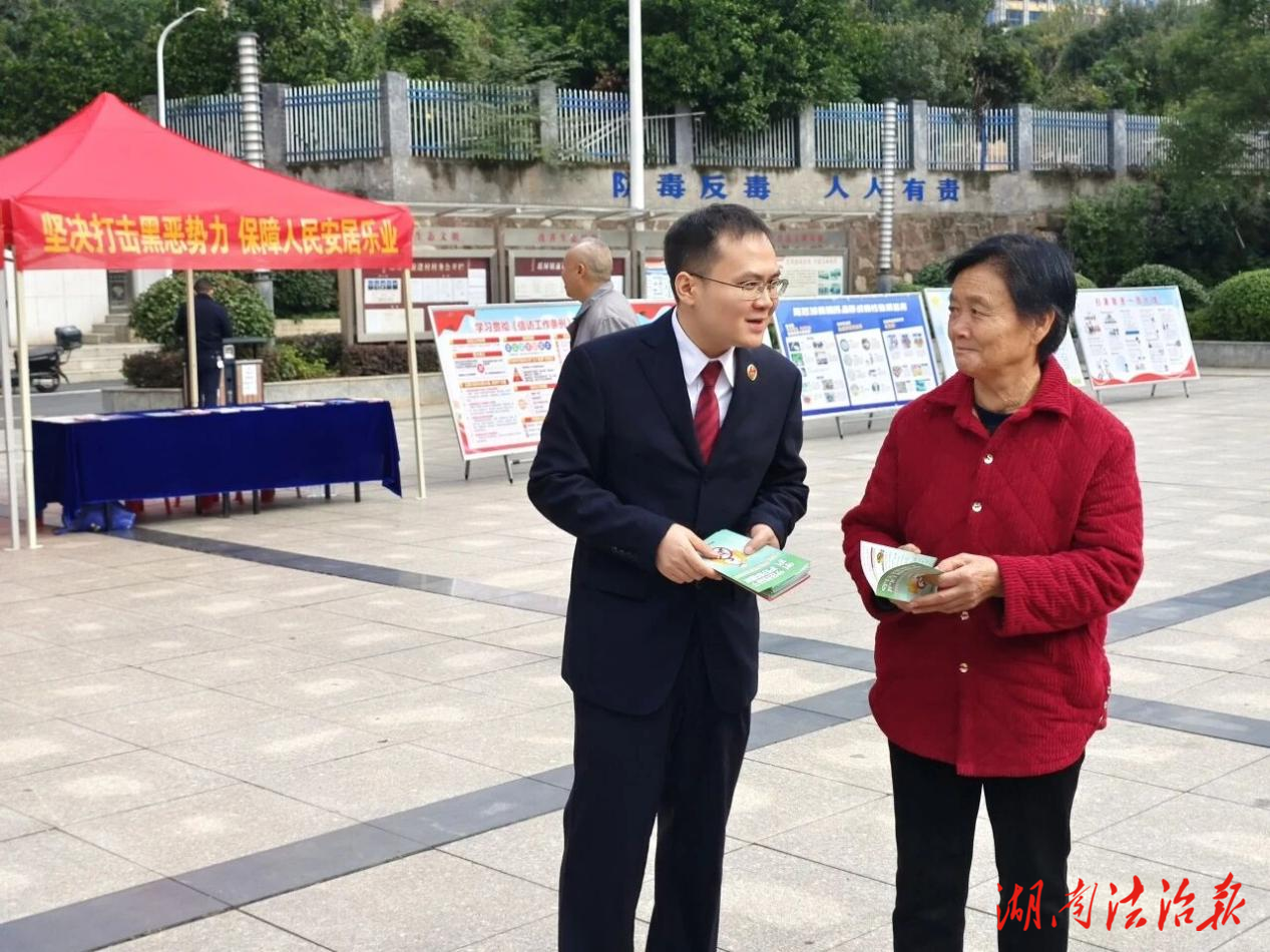 湖南法治報(bào)訊(通訊員 石方瑋)為縱深推進(jìn)掃黑除惡常態(tài)化斗爭(zhēng)工作,切實(shí)提高群眾參與度和知曉率。11月5日,衡陽(yáng)市雁峰區(qū)人民檢察院干警走進(jìn)廣場(chǎng)、街區(qū)等人員密集場(chǎng)所,開(kāi)展掃黑除惡常態(tài)化斗爭(zhēng)宣傳活動(dòng)。