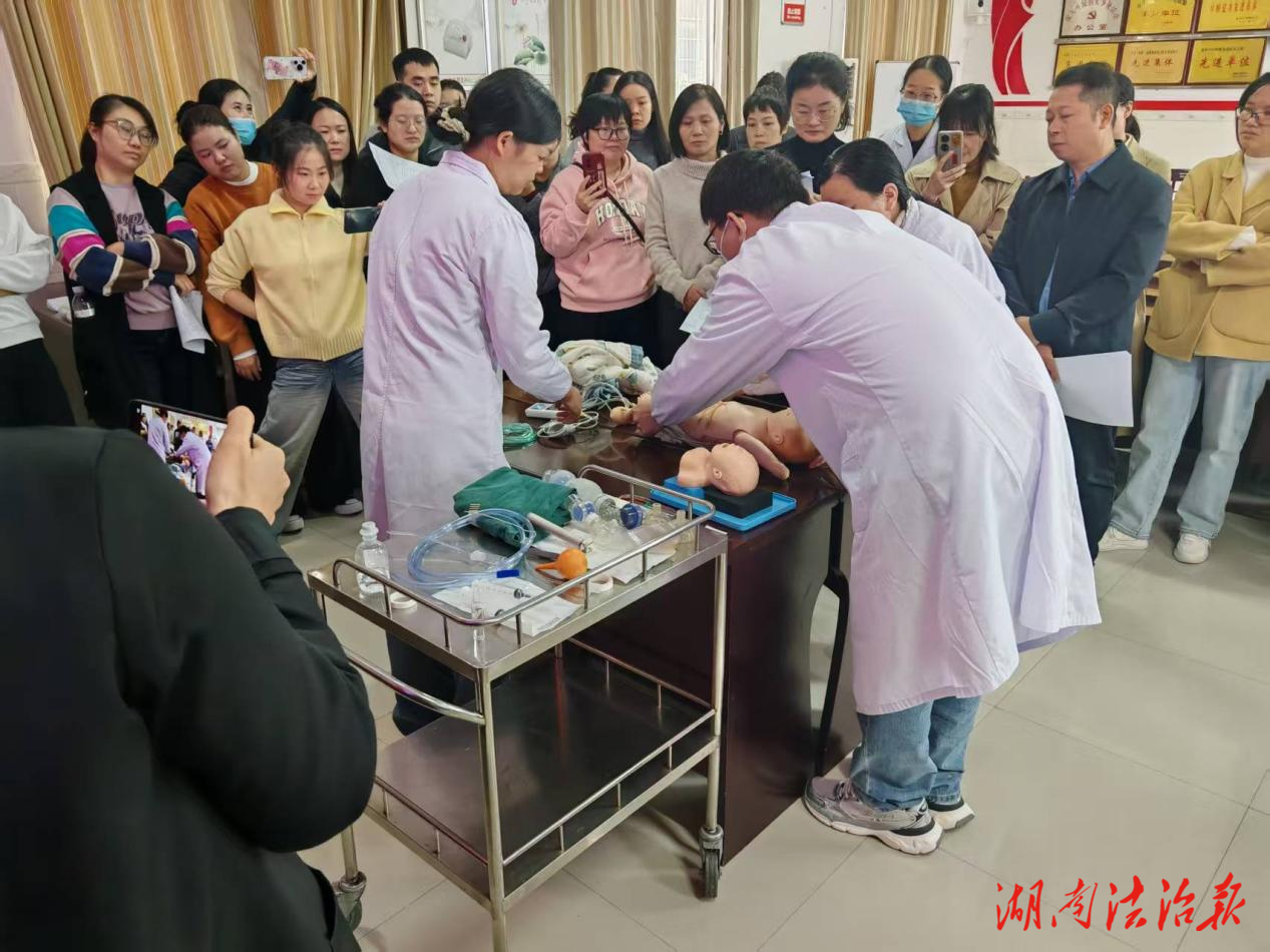 本次培訓課程緊湊務(wù)實,兼顧理論深度與實操指導性。道縣人民醫(yī)院新生兒科主任易麗受邀進行專題授課,她以《新生兒窒息復蘇理論知識》為核心,結(jié)合臨床典型案例,深入淺出講解了新生兒窒息的病因識別、風險評估、規(guī)范化復蘇流程等關(guān)鍵內(nèi)容,同時分享了多例危重新生兒搶救的實戰(zhàn)經(jīng)驗,為參訓人員搭建了“理論+實踐”的學習橋梁。授課結(jié)束后,易麗帶領(lǐng)醫(yī)護團隊進行了嗆奶急救等實操技術(shù)的現(xiàn)場演示,通過標準化動作示范、關(guān)鍵環(huán)節(jié)拆解,幫助學員直觀掌握操作要領(lǐng),現(xiàn)場學習氛圍濃厚。