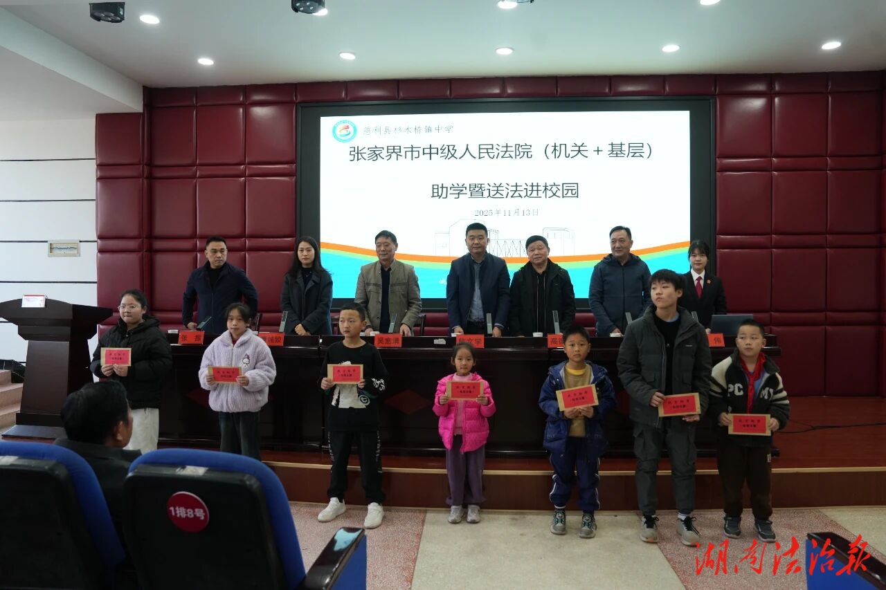 湖南法治報訊(通訊員 張林海 龍偉)11月13日,張家界市中級人民法院關(guān)工委以“關(guān)愛月”為契機(jī),走進(jìn)慈利縣杉木橋鎮(zhèn)中心完小,開展助學(xué)暨送法進(jìn)校園活動,旨在將司法關(guān)懷的暖流注入鄉(xiāng)村,為青少年的茁壯成長播撒陽光與希望。張家界中院黨組成員、政治部主任陳文學(xué)出席活動,慈利縣關(guān)心下一代工作委員會、杉木橋鎮(zhèn)政府相關(guān)負(fù)責(zé)人參加活動。