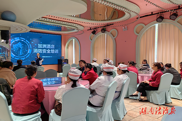 湖南法治報訊(通訊員 吳恂)為進(jìn)一步提升酒店行業(yè)從業(yè)人員的消防安全意識和應(yīng)急處置能力,11月24日,資陽大隊深入轄區(qū)加洲酒店開展消防安全培訓(xùn)活動。